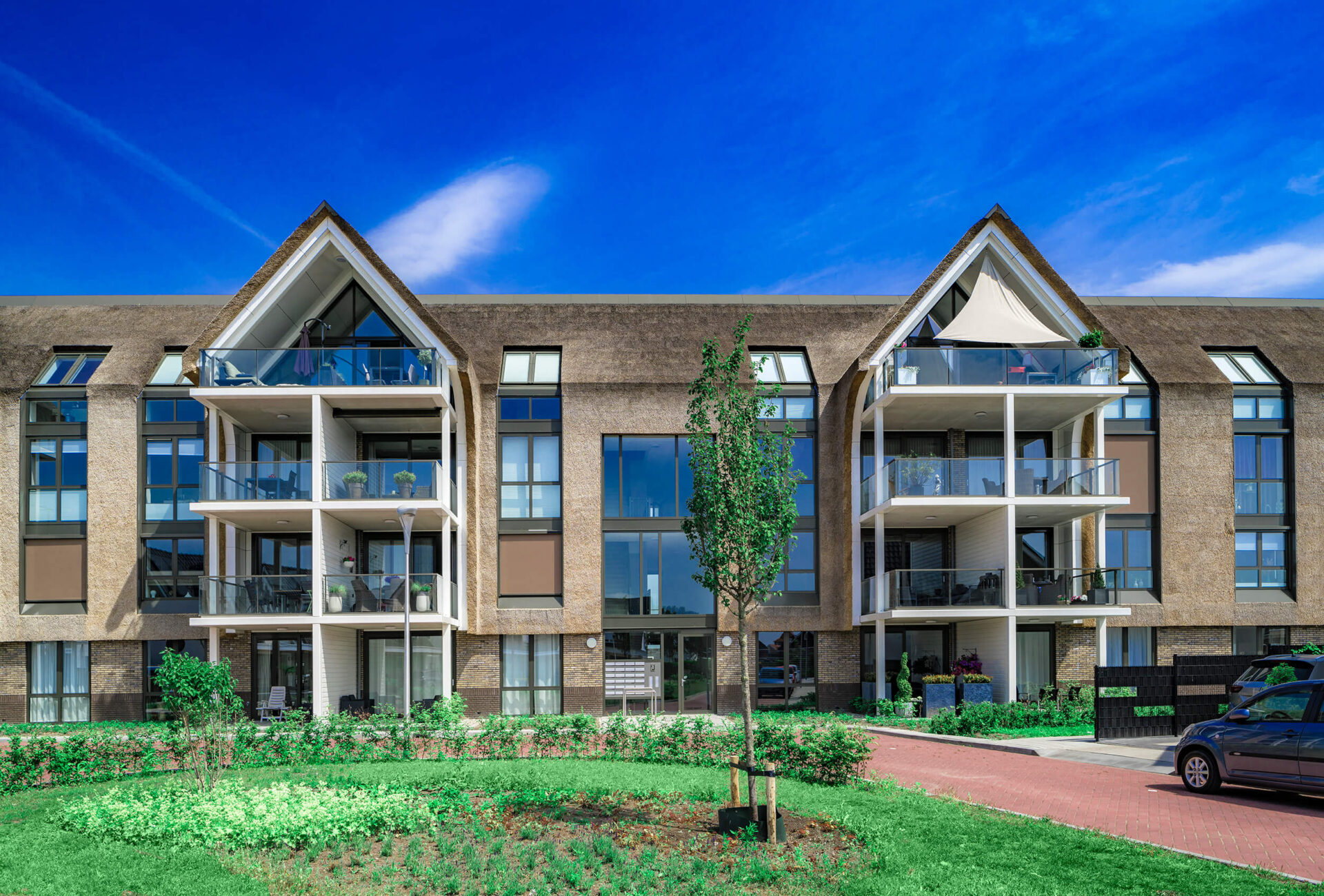 Dat is het ook geworden. Zie hier het resultaat: Stadsboerderij ‘Buiten de Veste’ in Steenbergen. Een gebouw met 23 koopappartementen onder een prachtige rieten kap en voorzien van duurzame warmte en koeling middels warmte-koude opslag in de bodem.